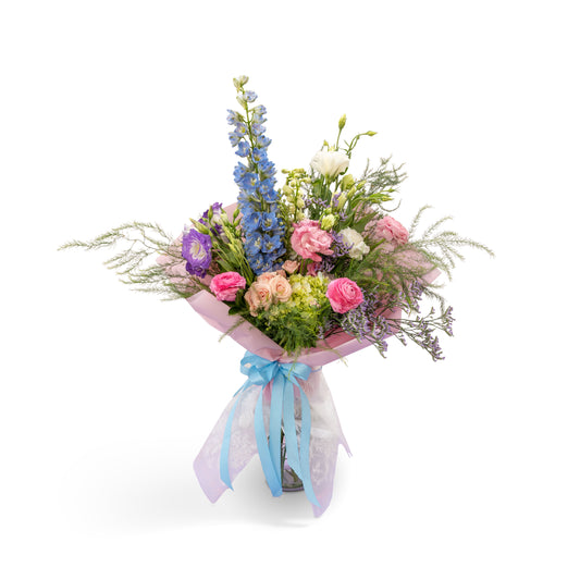 Arreglo "Rio de Flores" con Ranúnculos, Claveles, Rosas, Lisianthus y Raffini