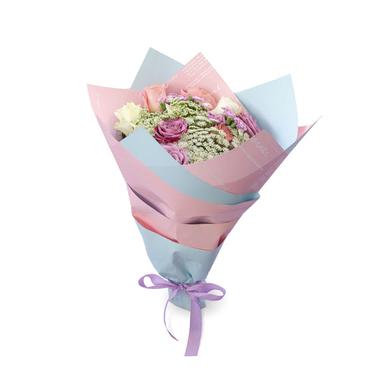 Ramo "Dulce Amor" estilo garden con Rosas, Gerbera, Mini Rosa y Lisianthus